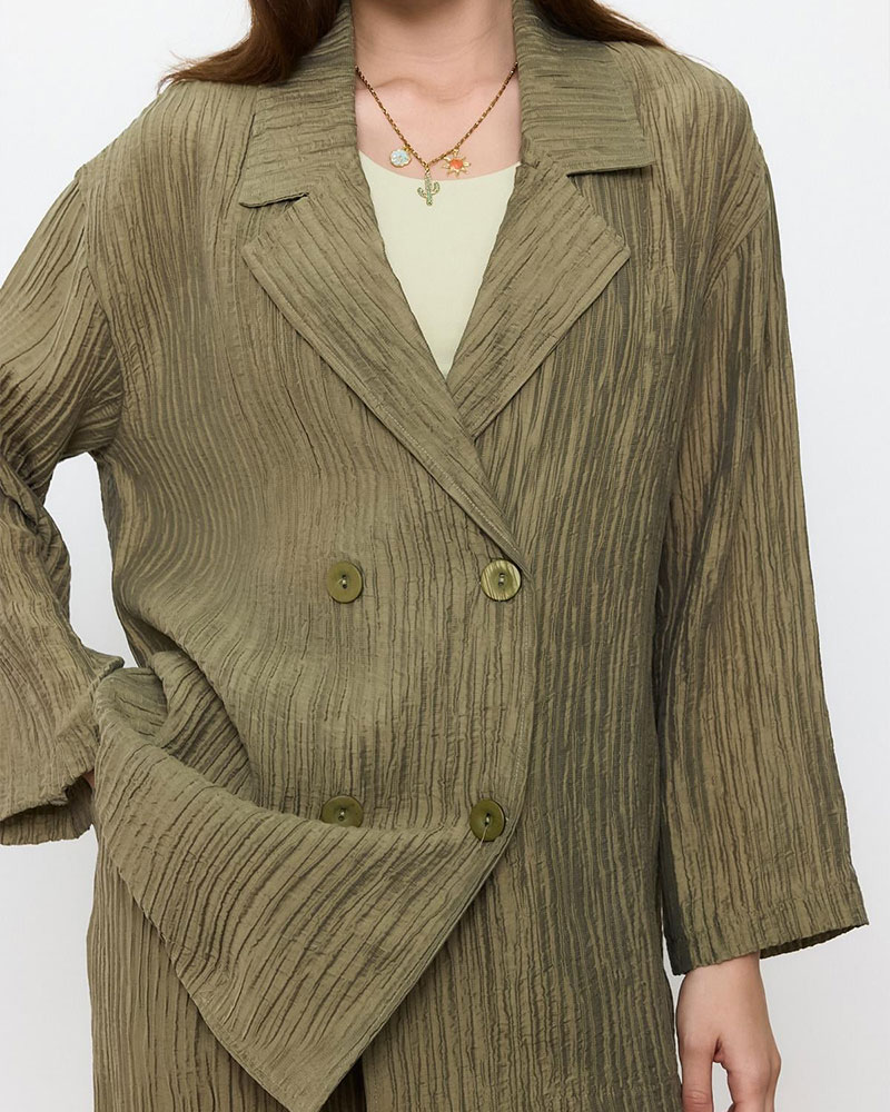 Sherin's outerwear category is filled with pieces that not only complement your style but also protect you from the elements. Our jacket collection offers a wide range from office elegance to casual style. Our trench coat models cater to every style, from classic cuts to modern designs. Our outerwear category also includes coats and jackets that keep you warm and stylish during the cold winter months. We offer a wide range of options, from patterned designs to classic overcoats. All our outerwear products are made with high-quality materials, ensuring long-lasting use. You can also find pieces in various colors that suit every style and combination.