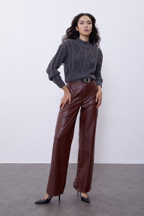 Kumaş Materyali %100 AKRİLİK Antrasit örgü desenli kısa kazak, uzun kollu, balıkçı yaka, yaka ve etek ucu fitilli, rahat kesim .Manken üzerindeki ürün S bedendir Maksimum 30 °c Sıcaklıkta Tersten Hassas Yıkayınız.Ağartıcı Kullanmayınız.Kurutucuda Kurutulmaz.Sererek Kurutunuz.Düşük Sıcaklıkta Tersten Ütüleyiniz.