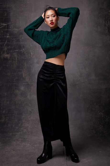 Cream Color Knit Pattern Crop Sweater SWK4306KR Yellow Knit Pattern Crop Sweater SWK4306SR Anthracite Knit Pattern Crop Sweater SWK4306ANT Dark  Green Knit Pattern Crop Sweater SWK4306KY lilacc Knit Pattern Crop Sweater SWK4306LL