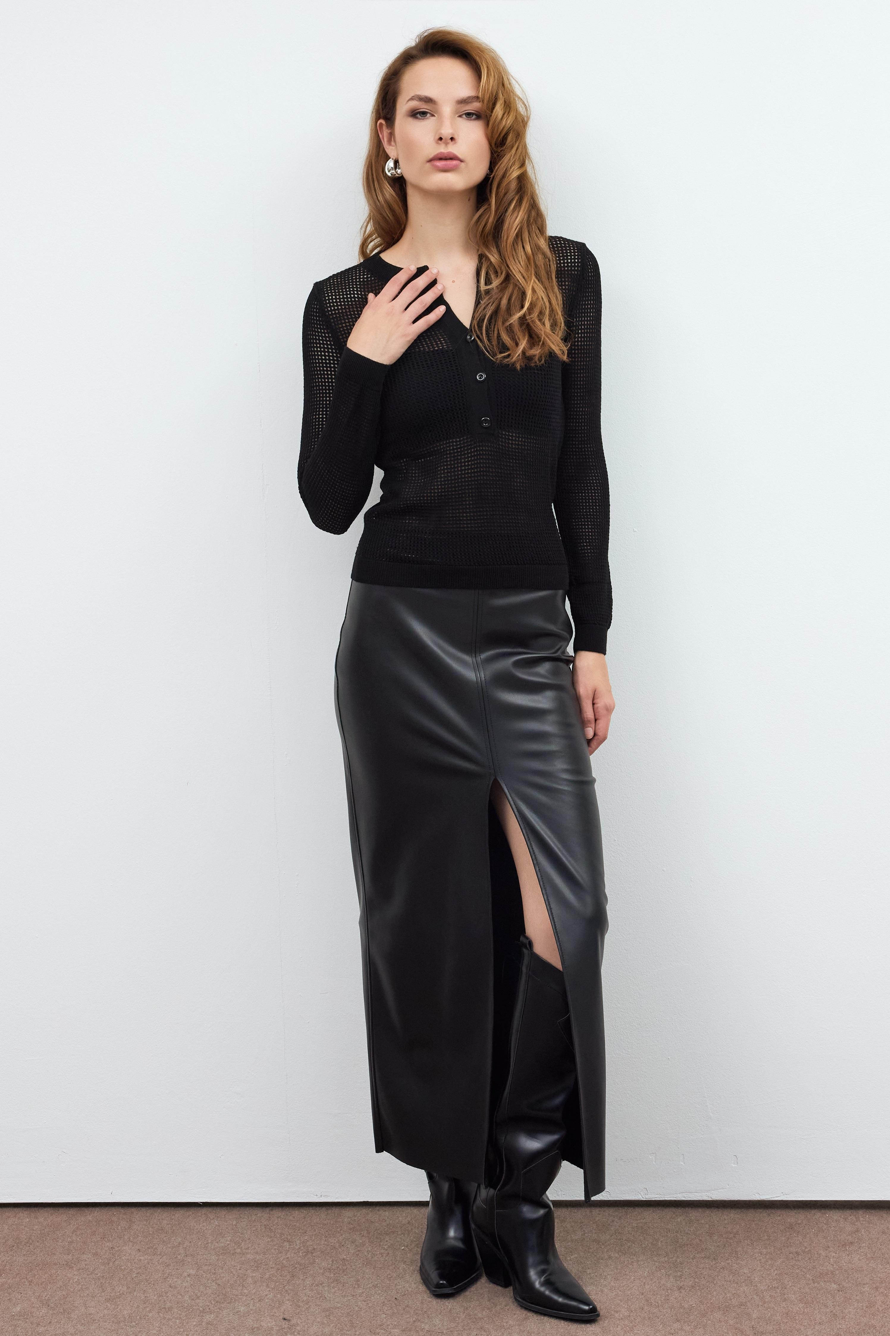 Button Detailed Mesh Knitted Sweater (SW23K4833Sİ)