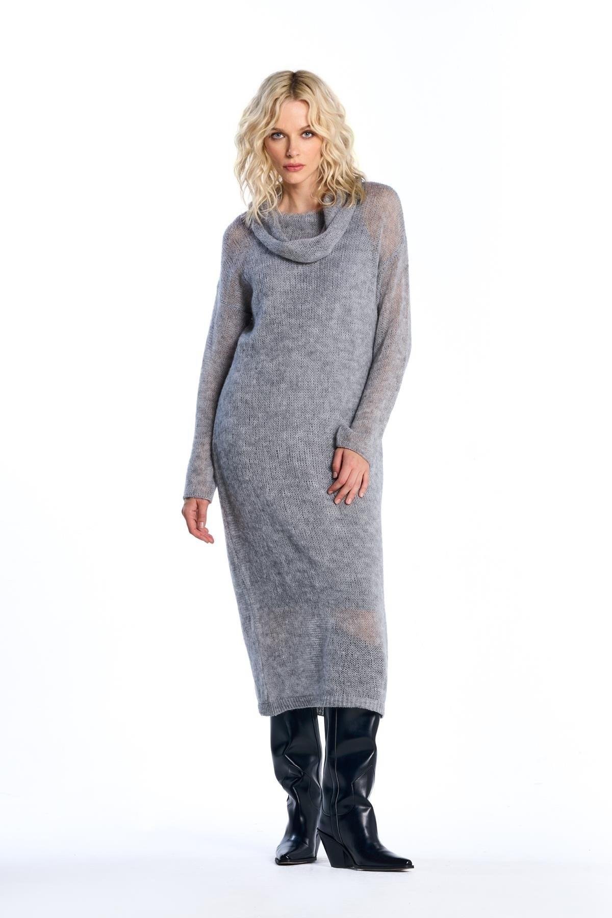 Gri Transparan Triko Elbise (SW24D5123GR)
