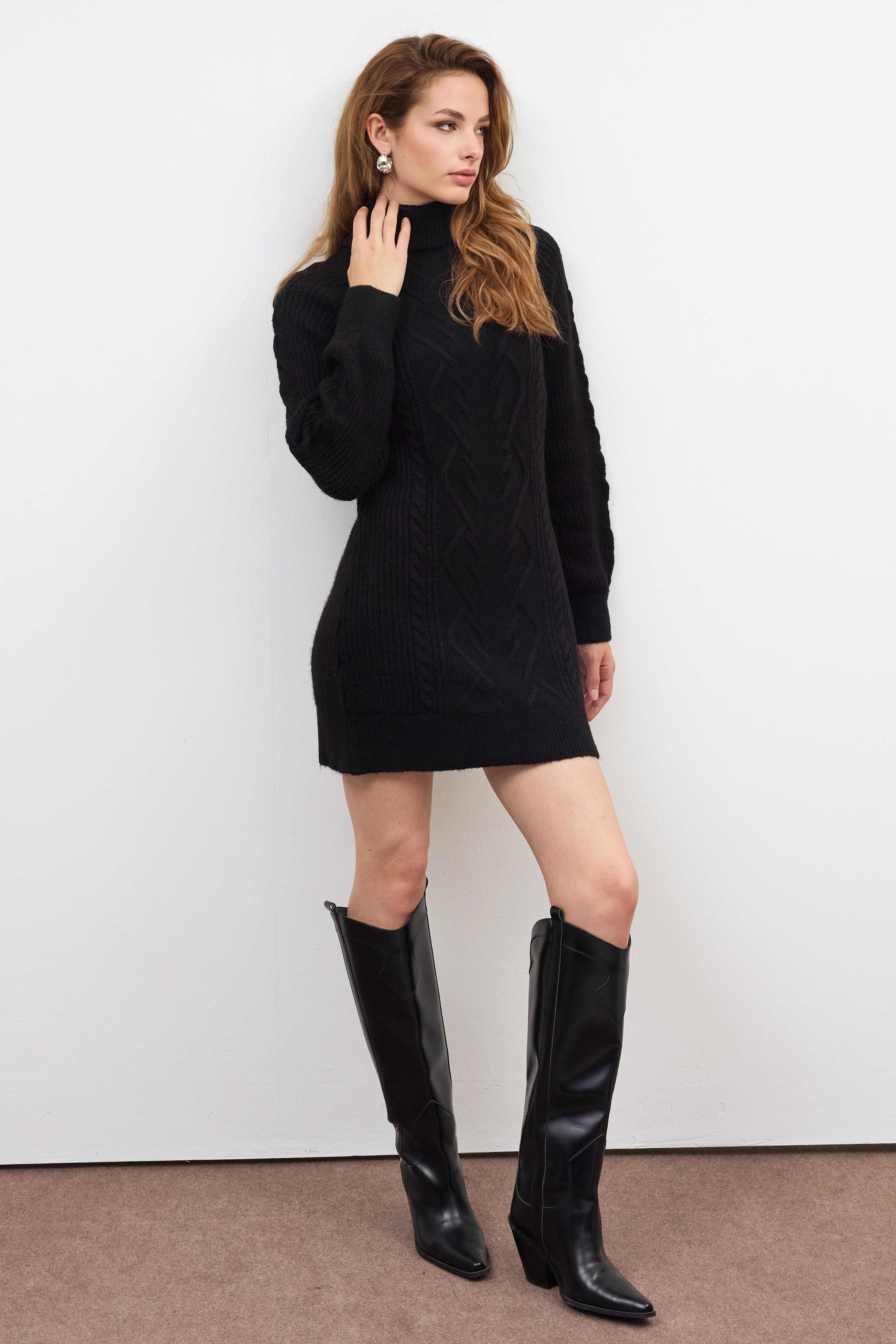 Siyah Balıkçı Yaka Triko Elbise
