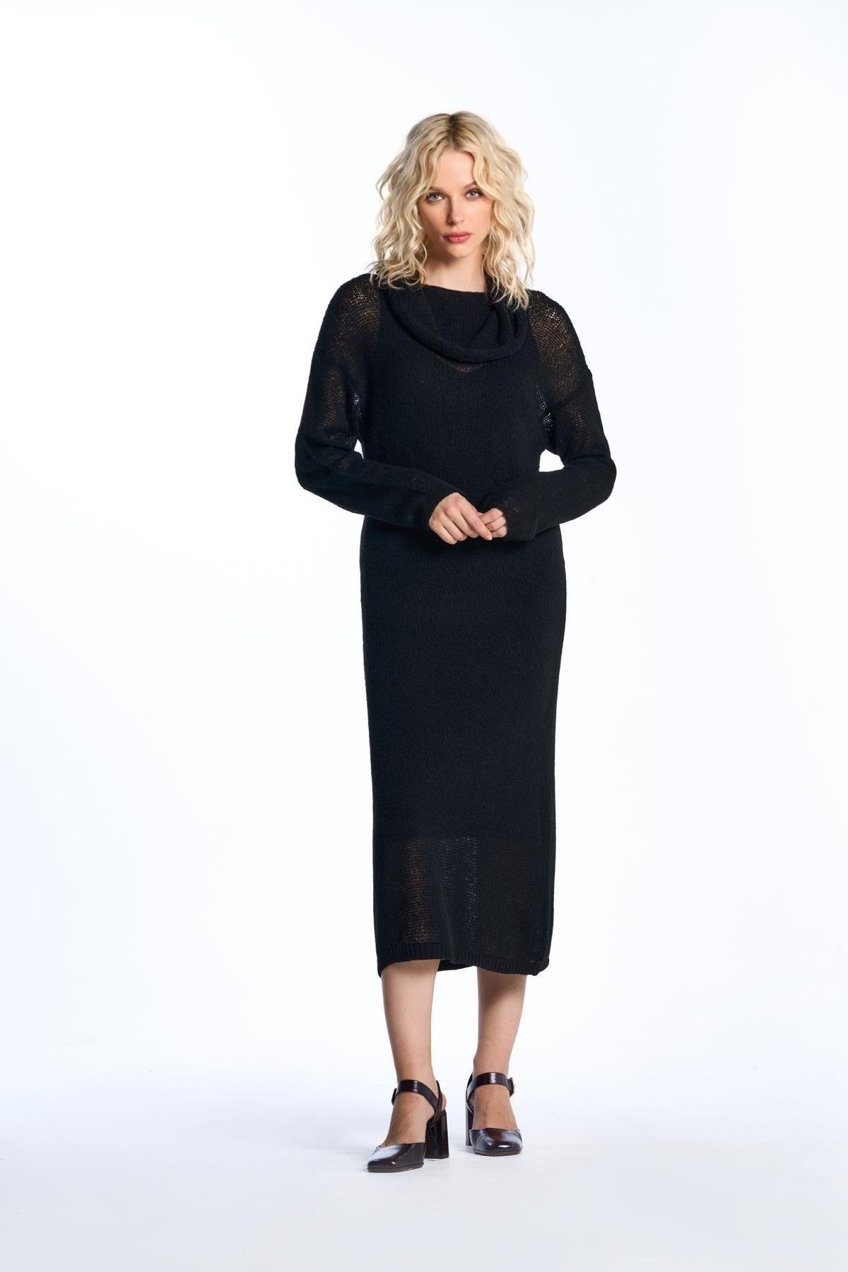 Siyah Transparan Triko Elbise (SW24D5123Sİ)