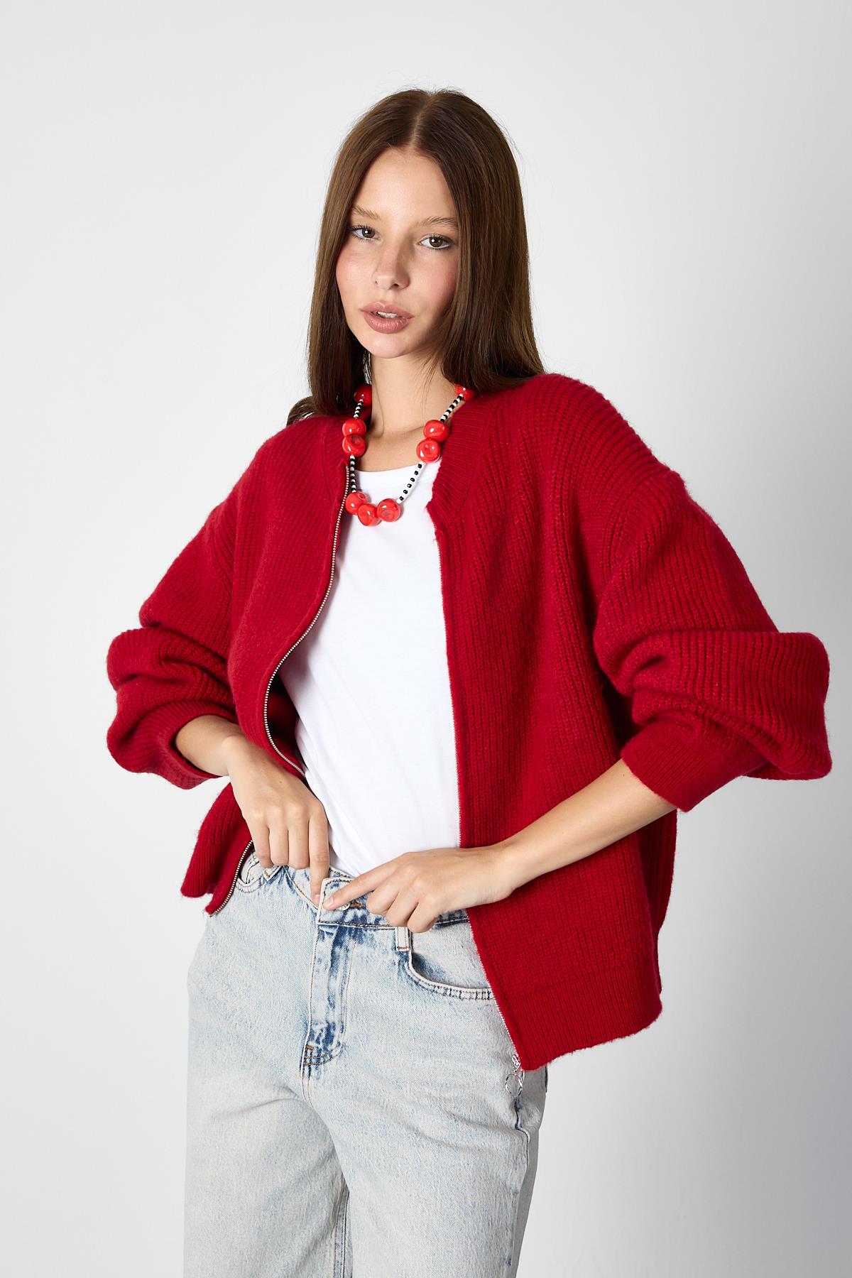 Kırmızı Fermuarlı Triko Hırka (SW24C5281KI)