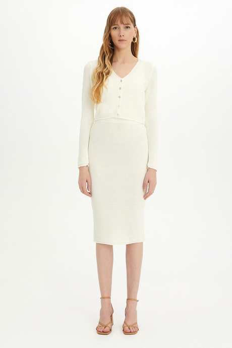 Sherin Woman Ecru Ribbed Skirt Cardigan Set SWTK3011-15EK (SWTK3011-15EK)