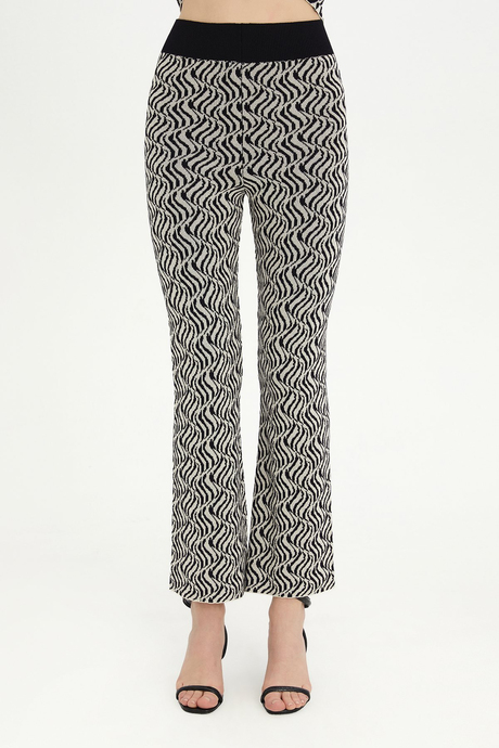Sherin Woman Navy Blue-Ecru Jacquard Flare Knit Pants SWP4346LE (SWP4346LE)