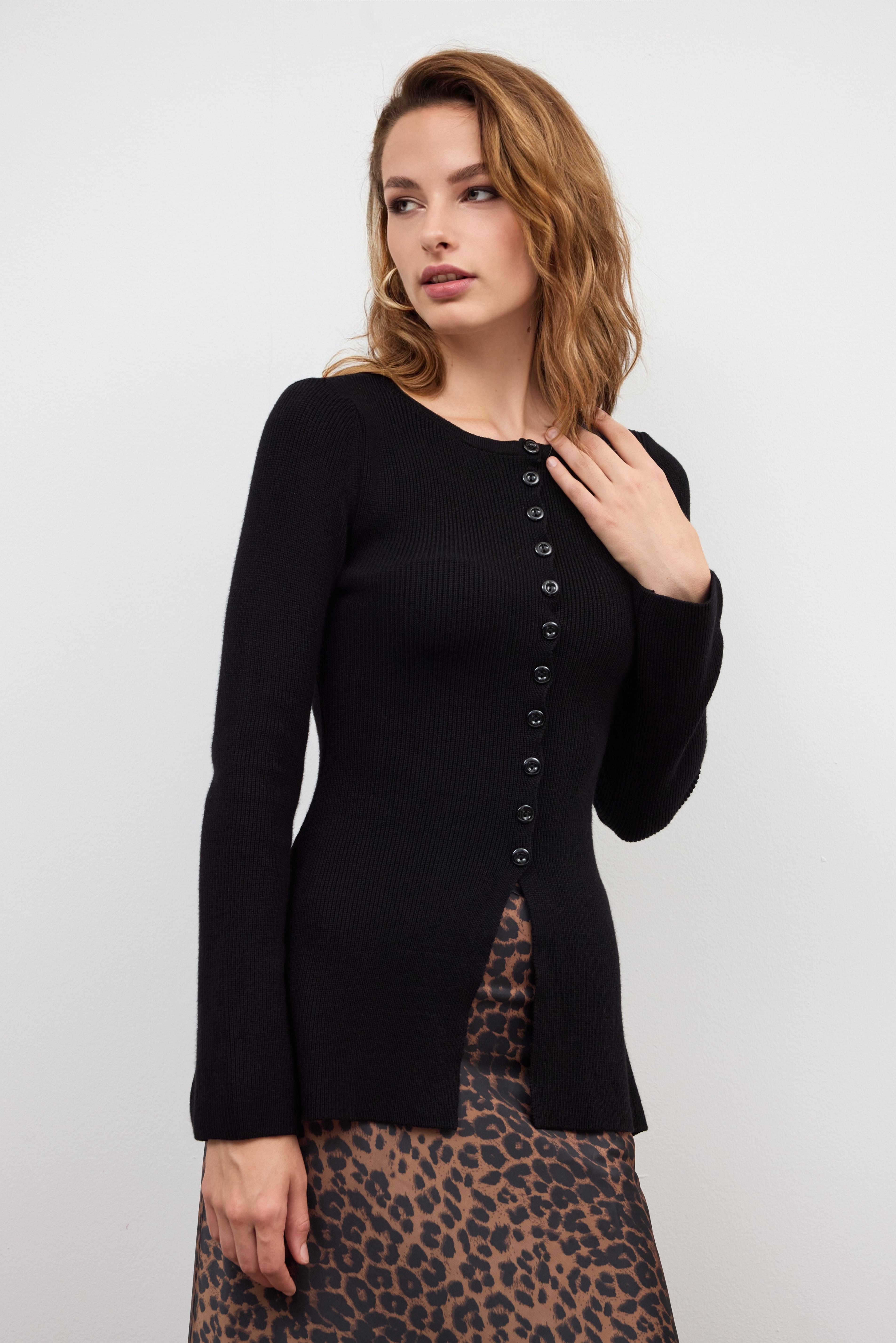 Siyah Önü Düğmeli Triko Bluz (SW25K5476Sİ)