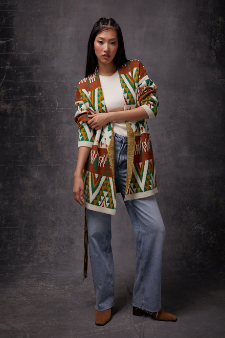 Tan Patterned Knit Cardigan SWC4374TA Green Patterned Knit Cardigan SWC4374YE
